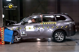 Die zukunftsweisenden und innovativen Mitsubishi-Modelle mit elektrobasierten EV- und PHEV-Antriebssystemen verbinden auf faszinierende Weise Effizienz und Nachhaltigkeit mit Dynamik und Fahrvergnügen. Aber Sie erfüllen auch höchste Sicherheitsanforderungen – das zeigen die aktuellen Ergebnisse des neuen Outlander PHEV im Euro NCAP-Crashtest, der diese Prüfung mit dem Maximalergebnis von fünf Sternen absolvierte. Das Unterflur-Lithium Ionen Batteriepaket und die elektrischen Hochvolt-Komponenten des Hochspannungsteils bewiesen exzellente Sicherheitsreserven und überstanden den Crashtest unbeschadet. Die Ergebnisse im Detail: